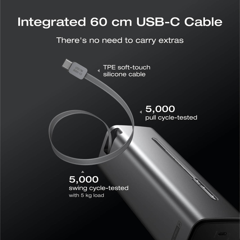 • Integruotas USB-C laidas: palaiko iki 140 W išėjimo galią