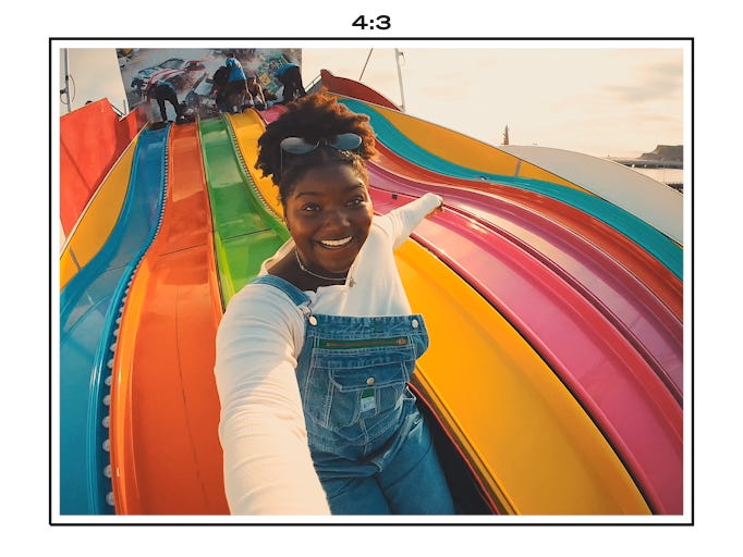 Naudodama visą 165° objektyvą, LIT HERO fiksuoja 4:3 formatu, kuris užtikrina 25% platesnį matymo lauką - dar daugiau įtraukiančių kadrų. Šis formatas universalus: Quik programėlėje gali pasirinkti itin platų SuperView 16:9 formatą (puikiai tinka YouTube) arba apkirpti vertikaliai socialiniams tinklams, kaip TikTok.
